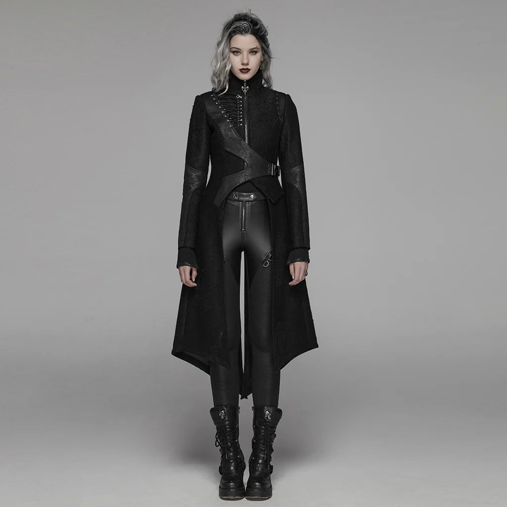 Enthüllen Sie Ihre Eleganz mit diesem Asymmetrischen Mantel, einem Meisterwerk, das Steampunk-Einflüsse mit kantiger Punk-Ästhetik verbindet. Dieses Statement-Stück ist für diejenigen gedacht, die es wagen, aufzufallen, und zeichnet sich durch einen dramatischen langen Frack und einen maßgeschneiderten Schnitt aus, der jede Silhouette betont. Perfekt, um einen mutigen Eindruck zu hinterlassen.