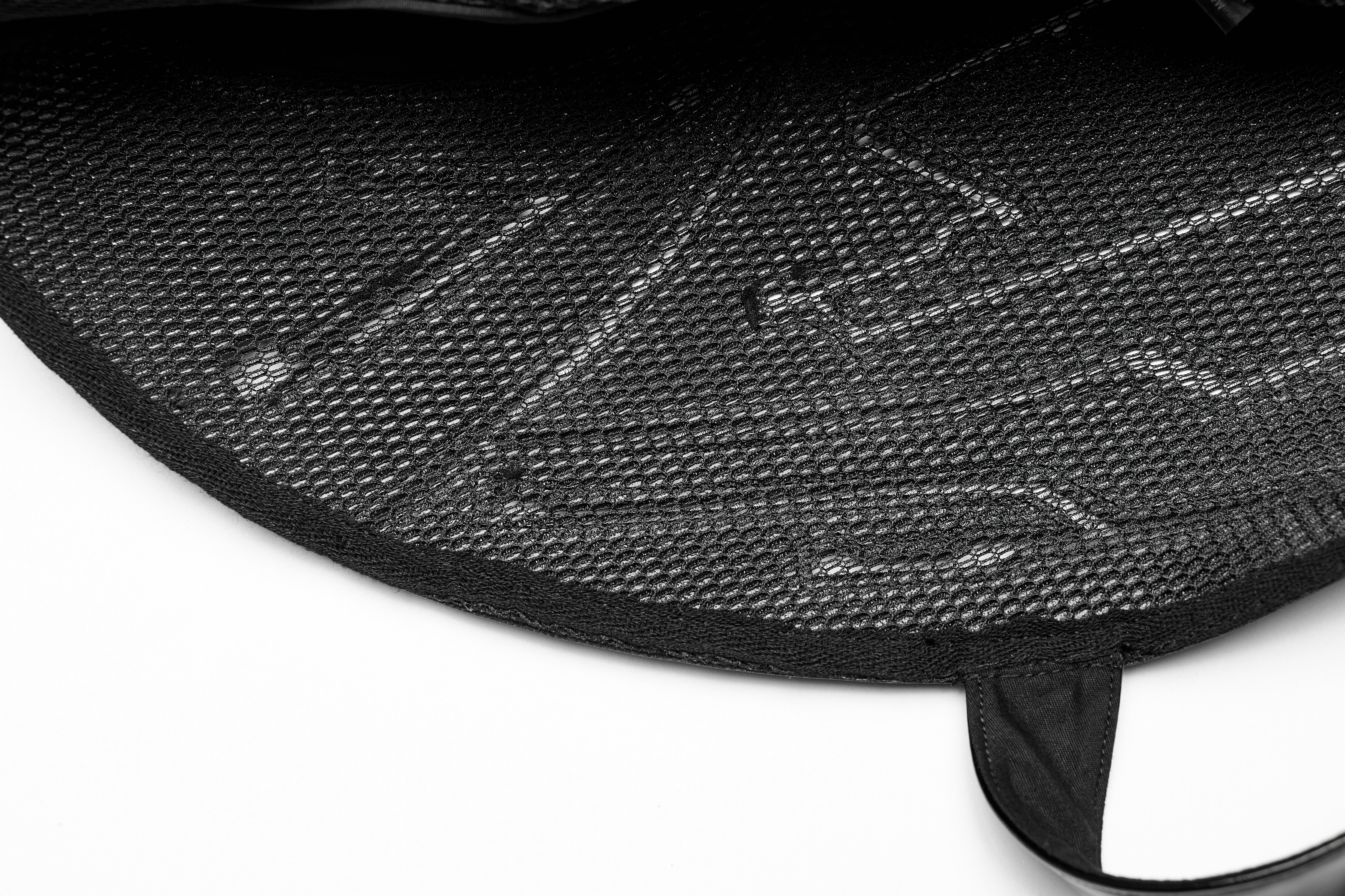 Dieser Cyberpunk-Harness in glänzendem Schwarz besticht durch ein asymmetrisches, einseitiges Schulterdesign. Die Kombination aus Lack und schwarzem Netzgewebe schafft ein einzigartiges, futuristisches geometrisches Muster mit markanten Ausschnitten. Verstellbare Druckknopfverschlüsse sorgen für perfekten Sitz und einen gewagten Look.