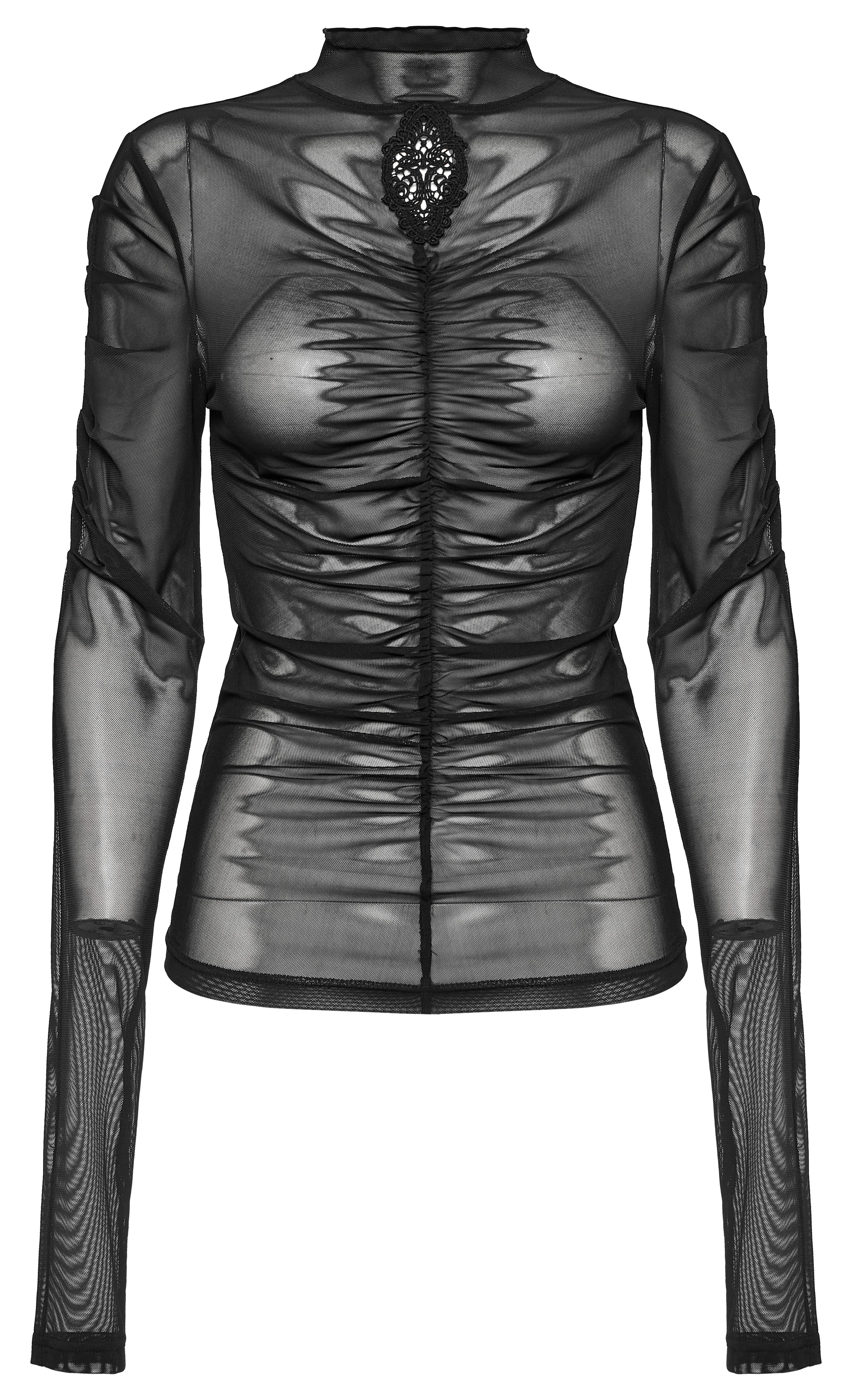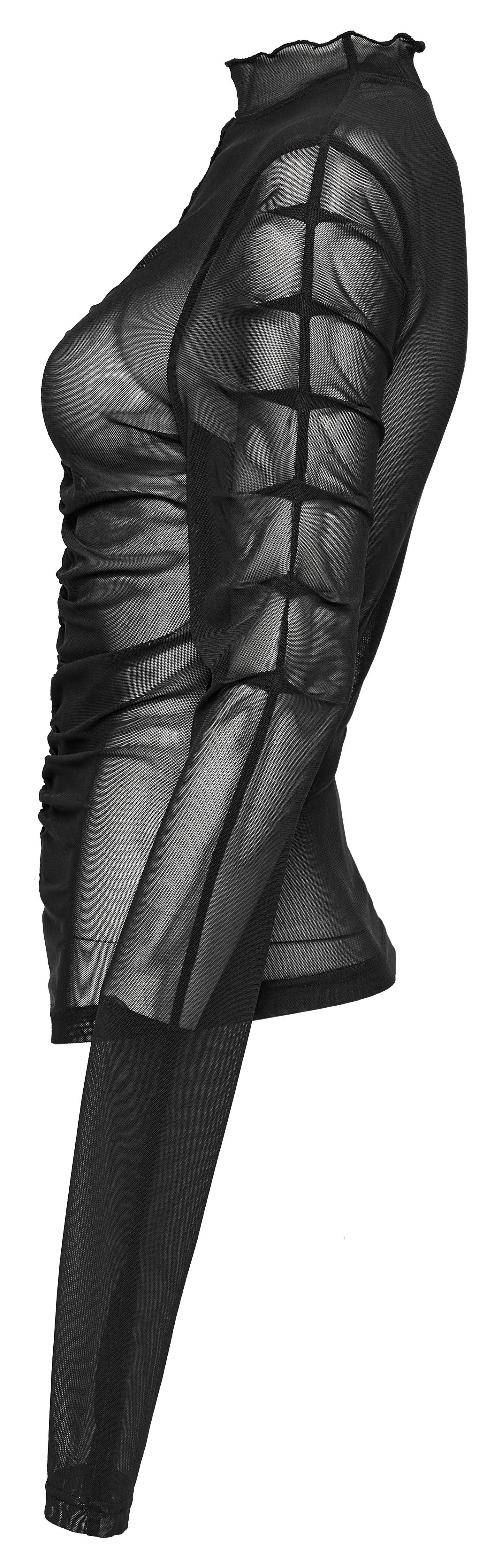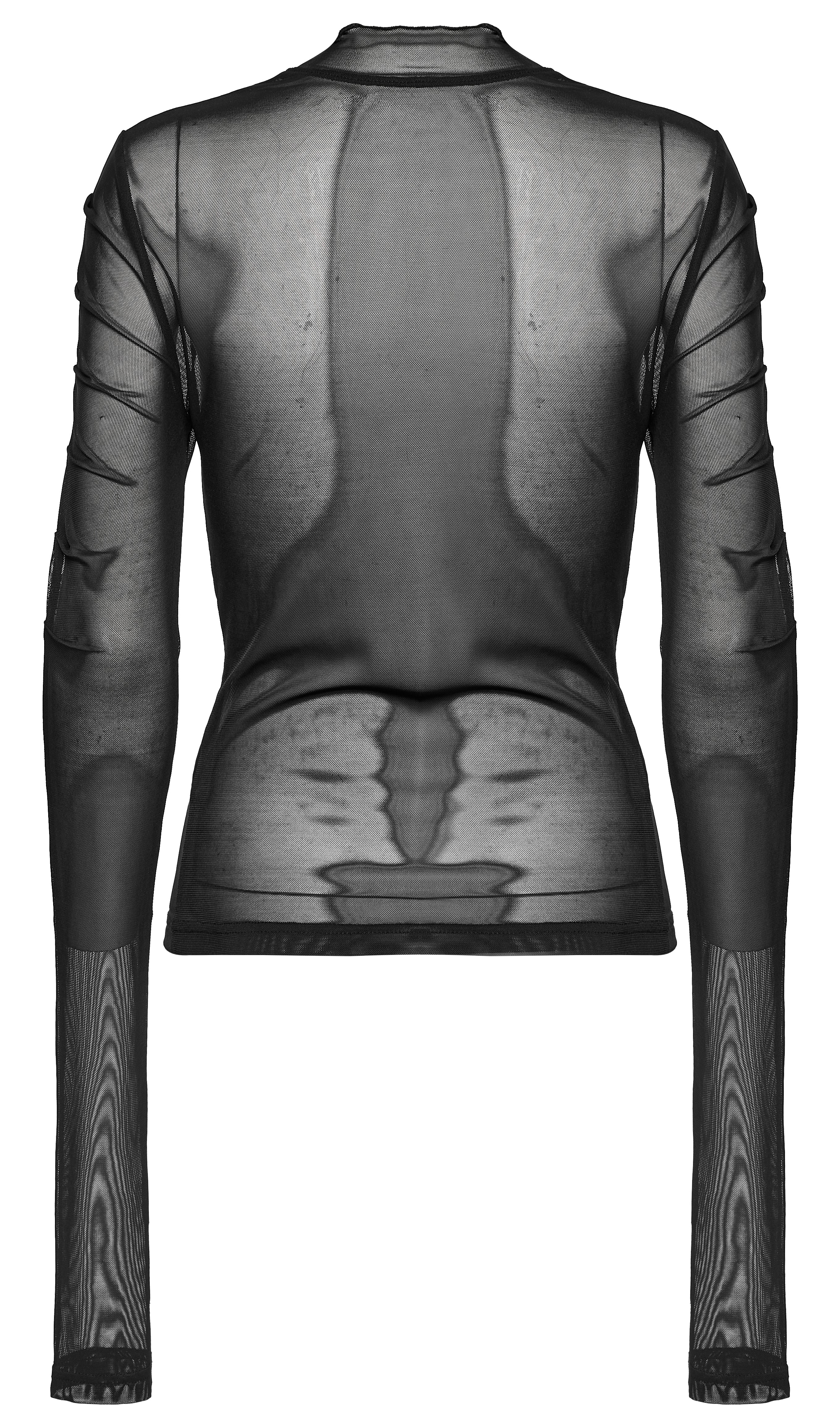 Dieses langärmlige T-Shirt besticht durch seinen elastischen Netzstoff und eine auffällige Bestickung. Die Brustpartie ist raffiniert gerafft, während als Detail eine kleine Stickerei verziert ist. Die Passform umfasst lange Ärmel mit praktischen Daumenlöchern.