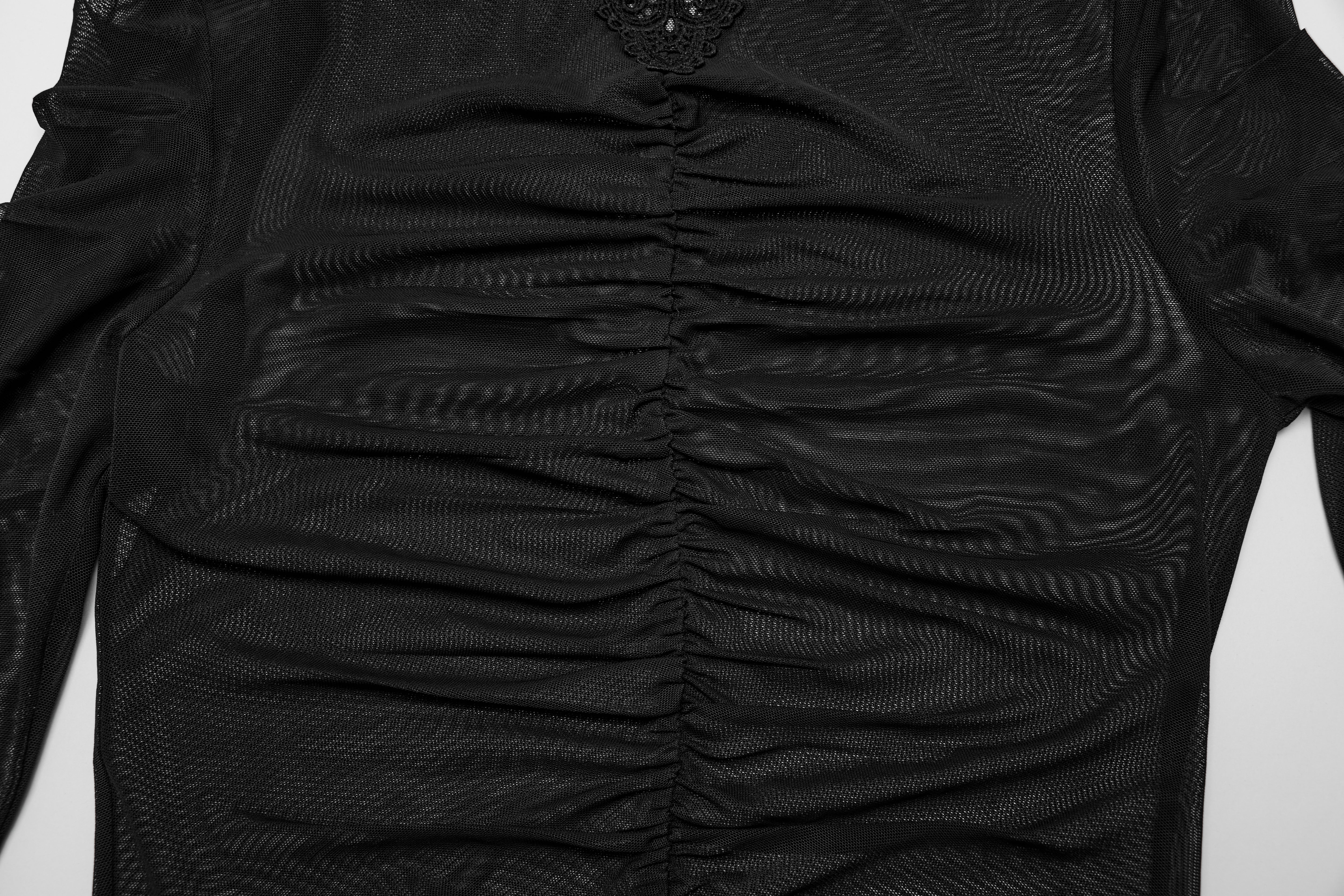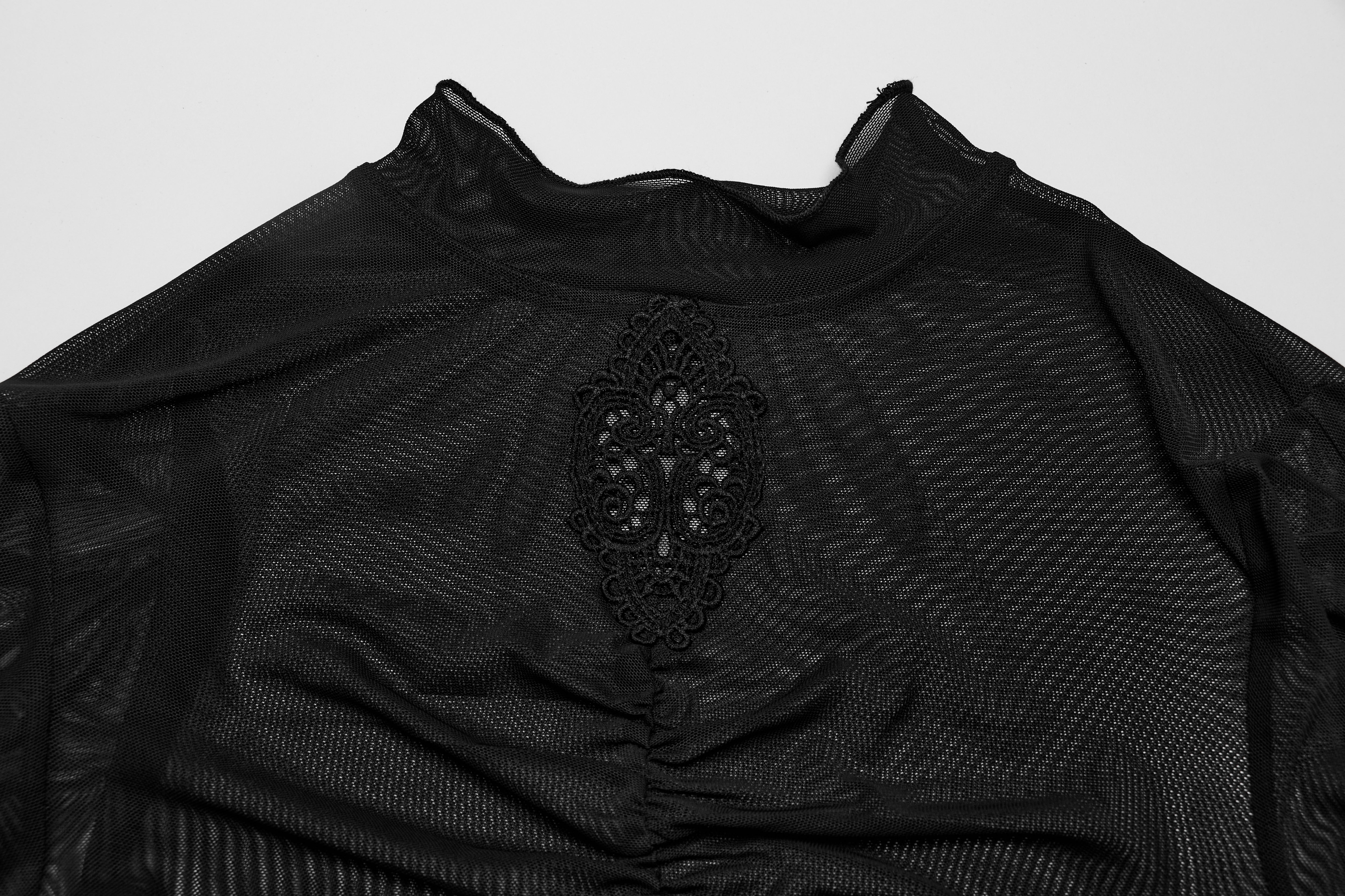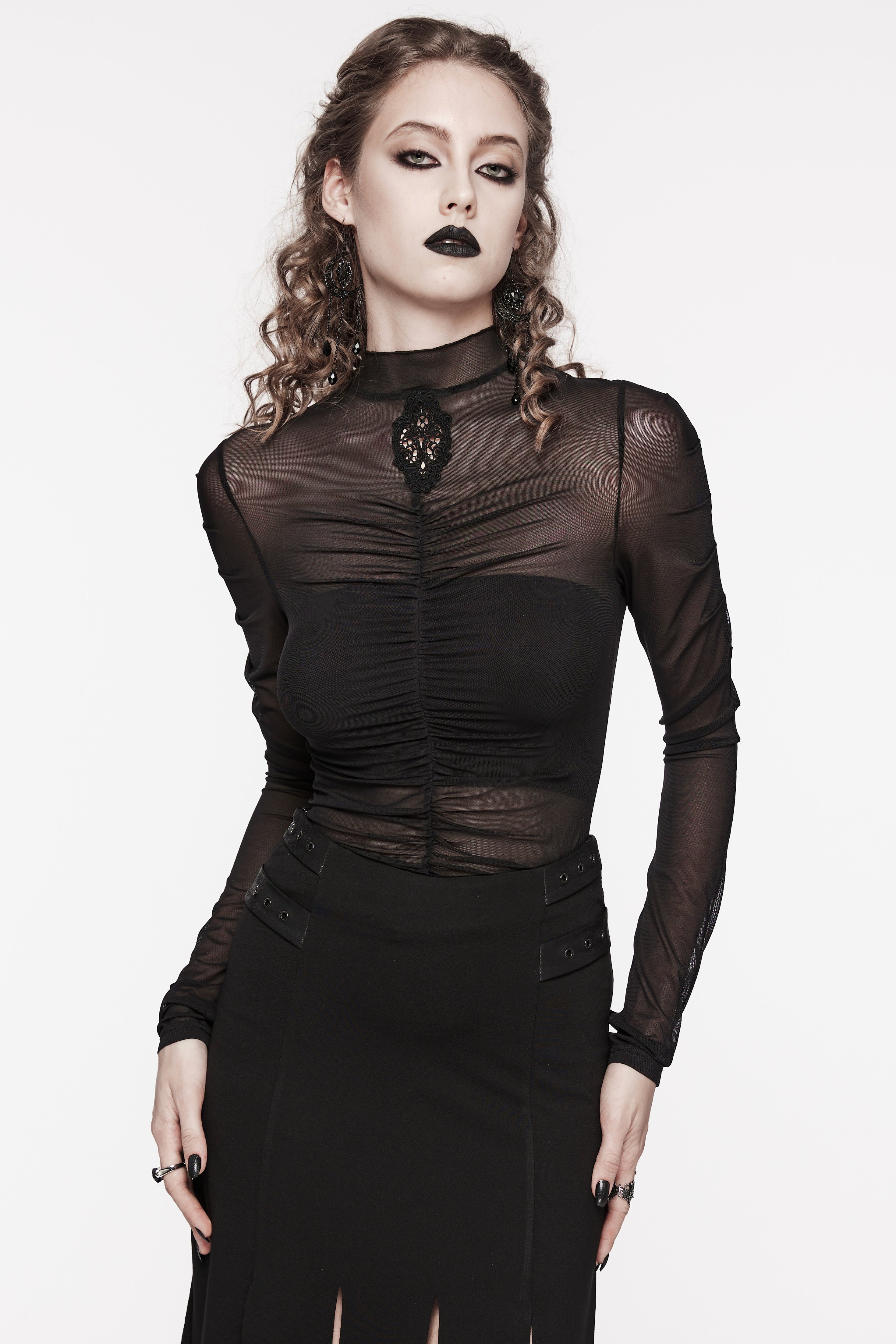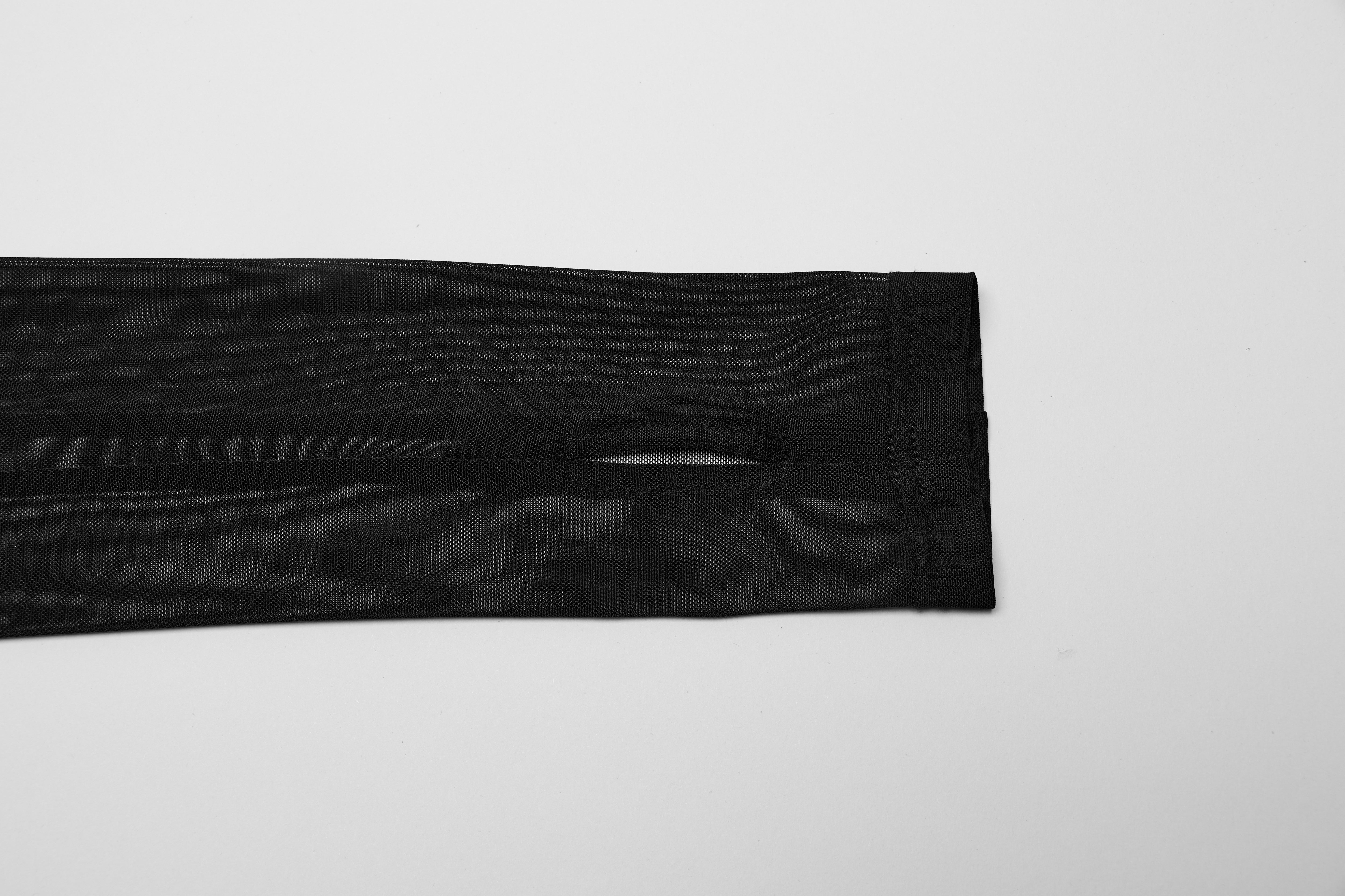 Dieses langärmlige T-Shirt besticht durch seinen elastischen Netzstoff und eine auffällige Bestickung. Die Brustpartie ist raffiniert gerafft, während als Detail eine kleine Stickerei verziert ist. Die Passform umfasst lange Ärmel mit praktischen Daumenlöchern.