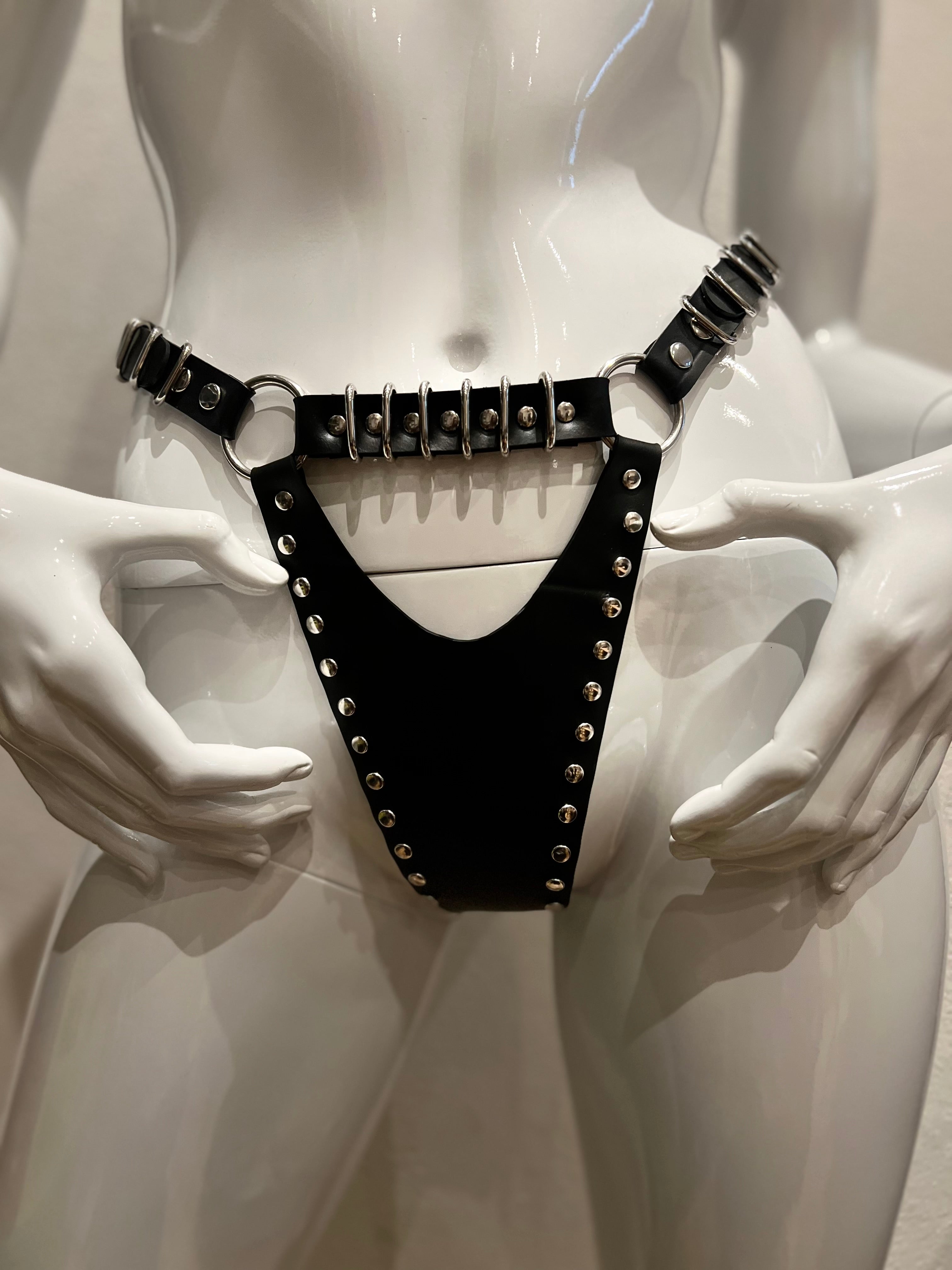 Dieser aufregende Latex-String besticht durch zahlreiche stylische Metallringe und Nieten. Der Harness-String mit Cutouts ist seitlich und im Schritt individuell verstellbar. Erhältlich in glänzendem Silber oder Gold und in drei verschiedenen Größen für den perfekten Sitz.