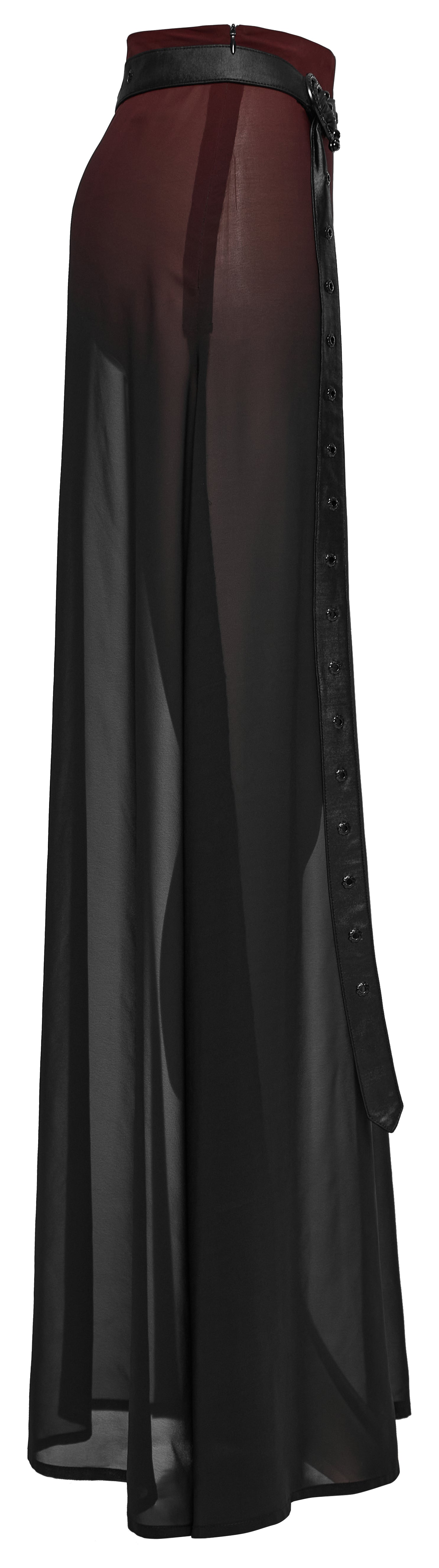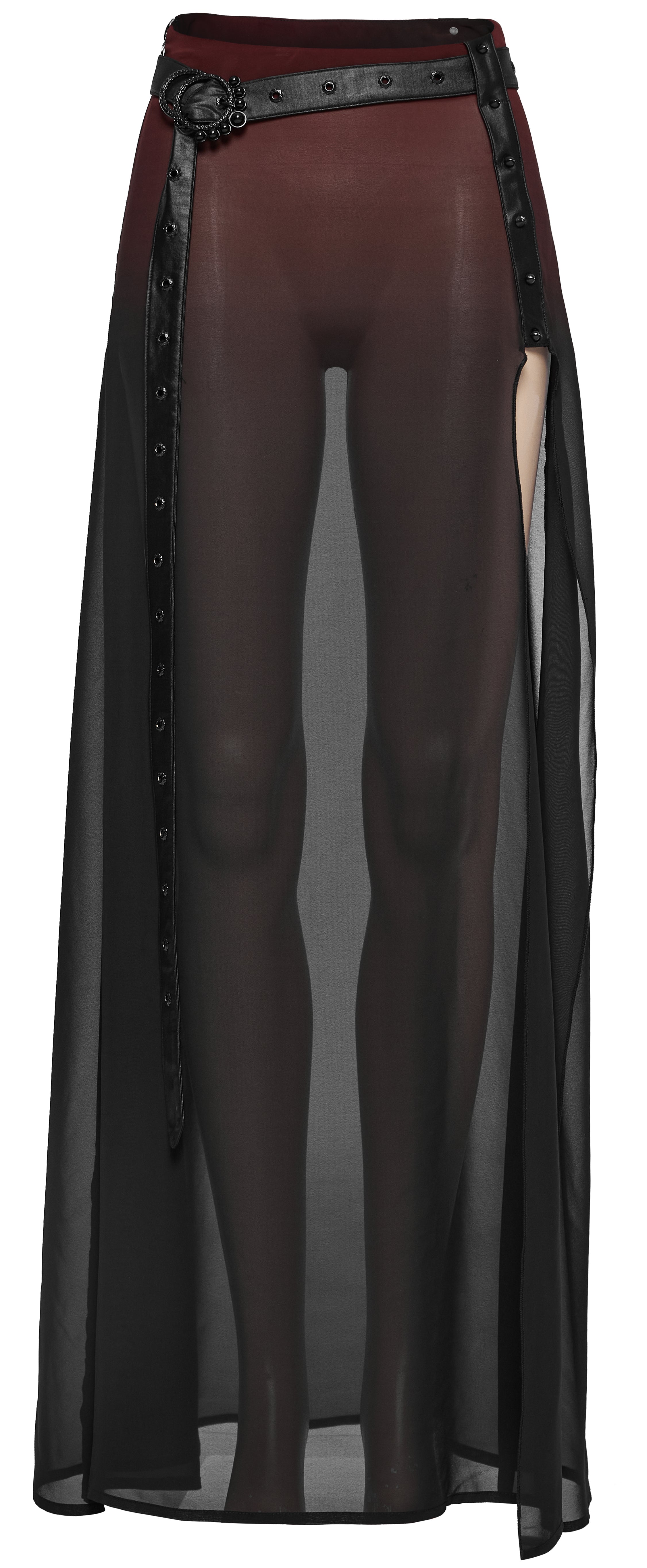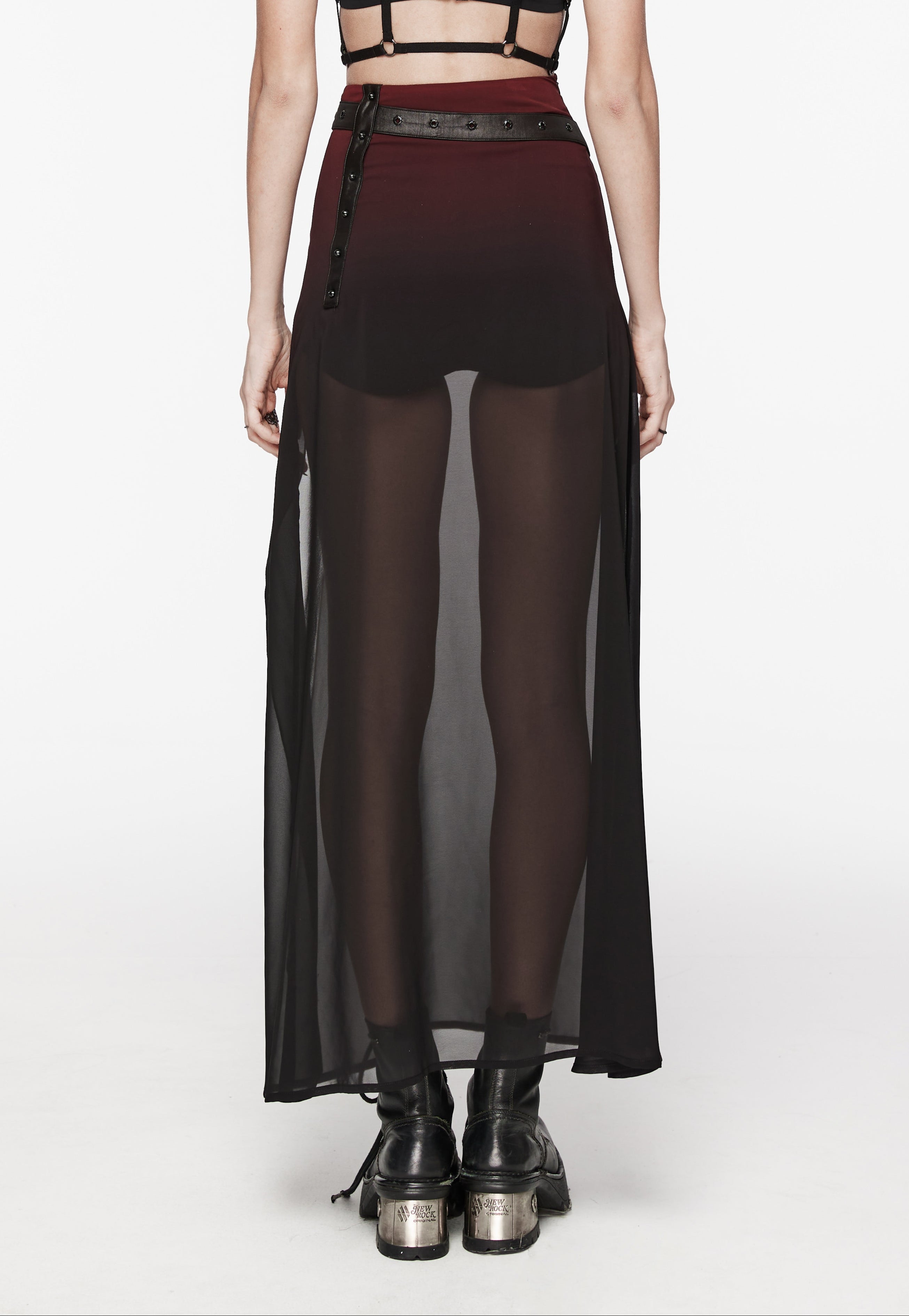 Dieser Maxirock besticht durch seinen verführerischen hohen Schlitz und das schmeichelhafte A-Linien-Design aus Chiffon. Der mitgelieferte Taillengürtel betont Ihre Silhouette, während der sanfte Farbverlauf von Dunkelrot zu Schwarz für einen dramatischen Look sorgt. Ein unauffälliger Seitenreißverschluss macht das Anziehen mühelos. Perfekt, um selbstbewusst und elegant aufzutreten.