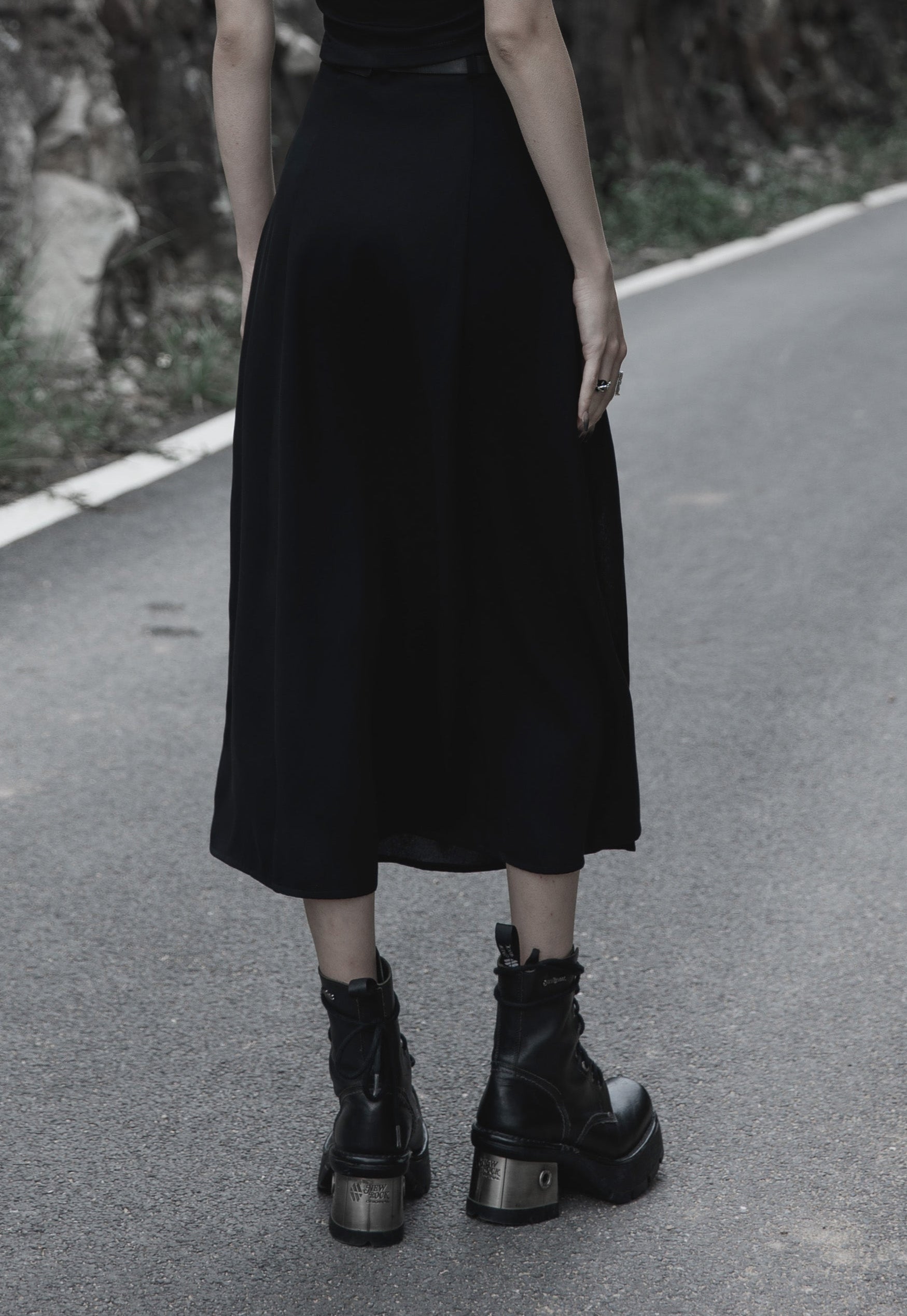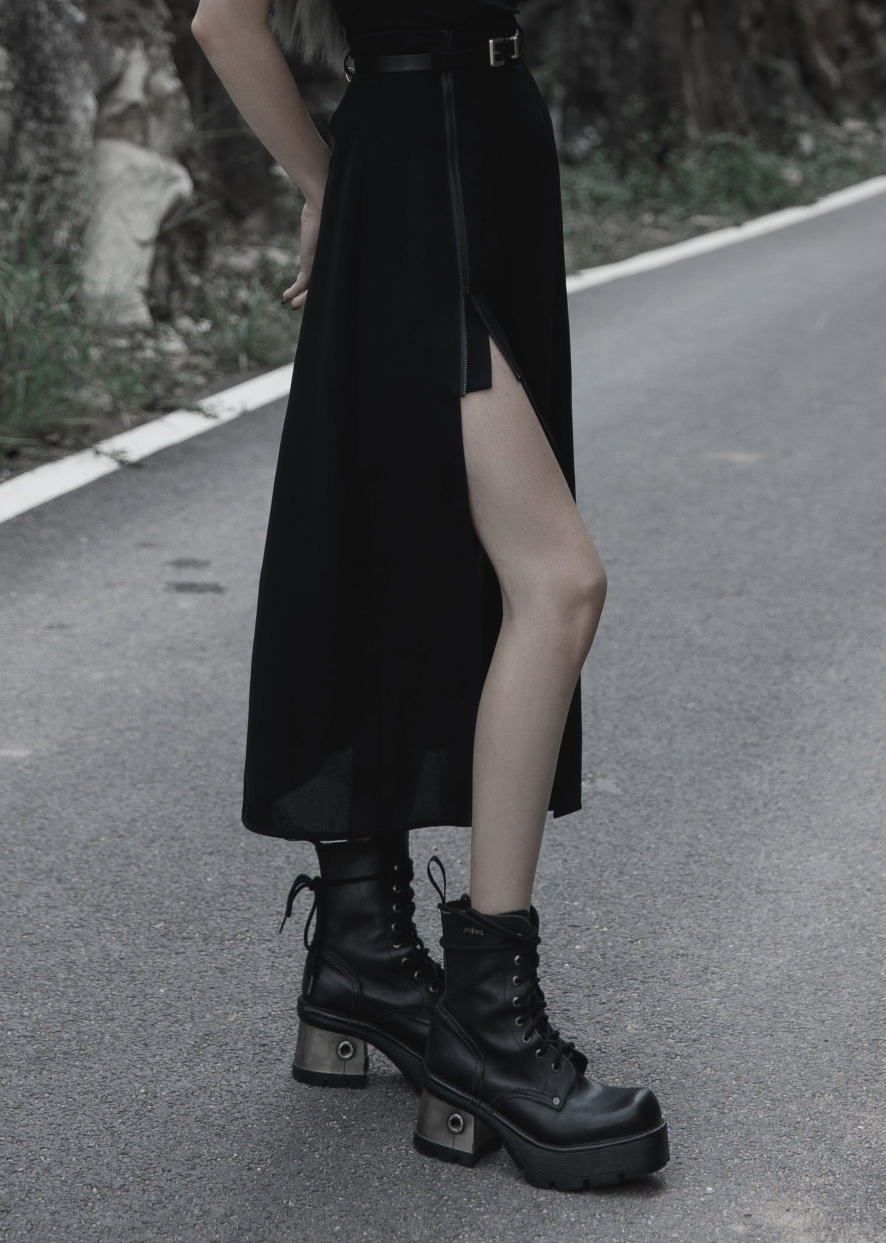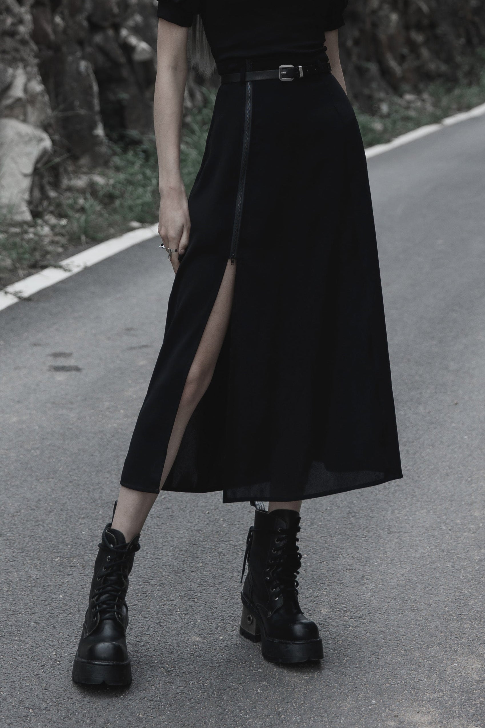 Dieser Midirock besticht durch einen verführerischen, tiefen Schlitz und einen seitlichen Doppelreißverschluss, der sich elegant nach oben und unten öffnen lässt – so bestimmen Sie selbst, wie viel Haut Sie zeigen möchten. Ein abnehmbarer Gürtel rundet das Design ab. Perfekt, um im Alltag mit einem gewagten Look zu überzeugen.