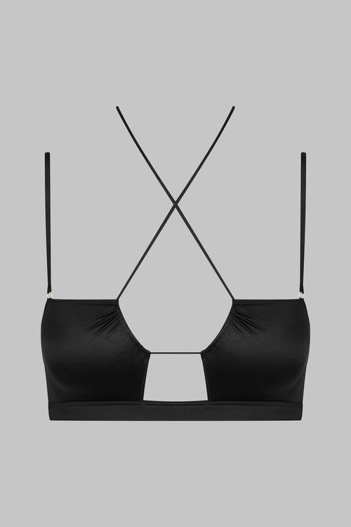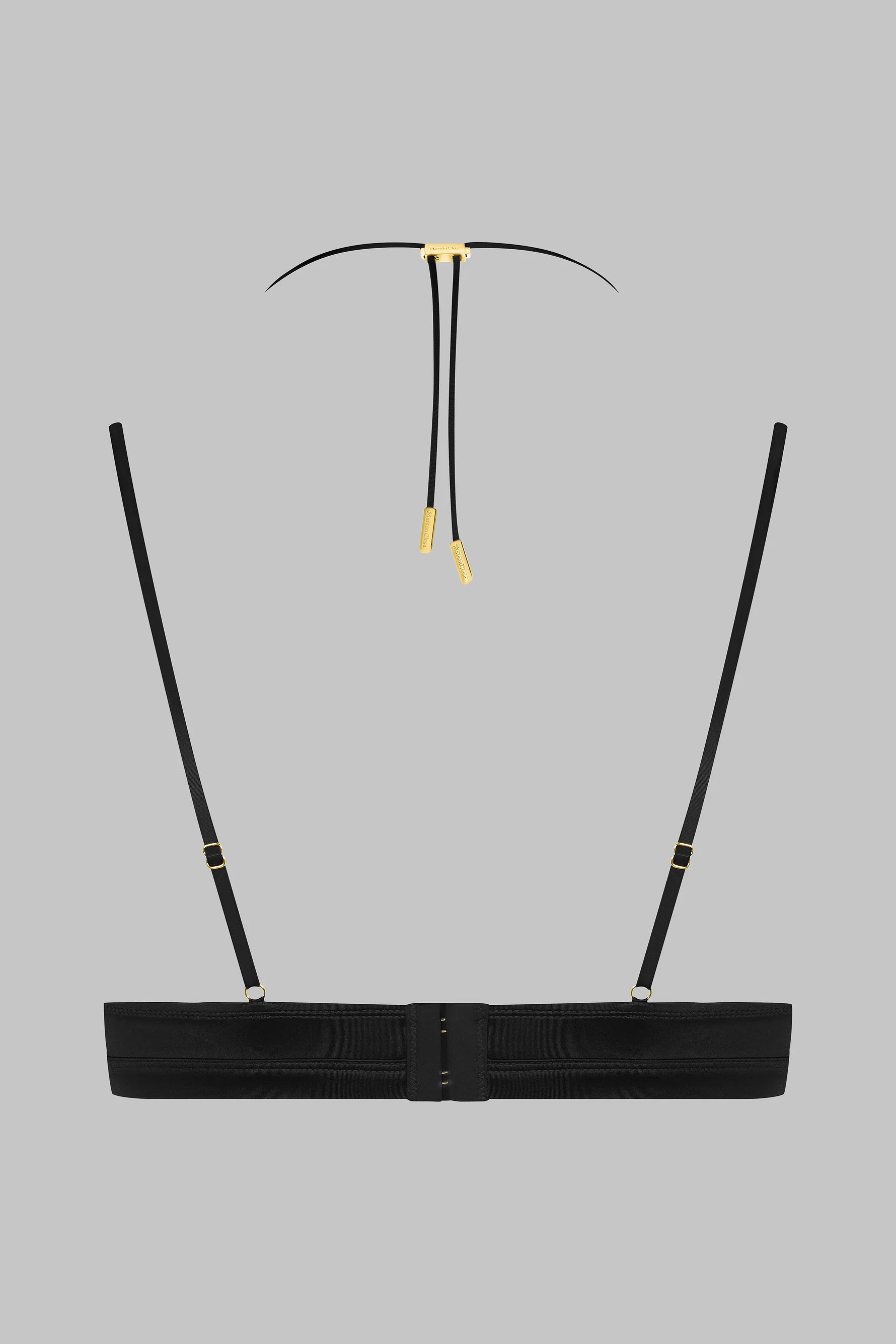 BH ohne Bügel, der Satinweichheit und Stil vereint. Die nahtlos geformten Körbchen sind durch Falten am Ausschnitt elegant strukturiert. Die Halsschnürung, die dank eines einzigartigen Verstellers in Gold beliebig positioniert werden kann. Die dünnen, flachen, verstellbaren Träger sorgen für eine perfekte Passform. Ein Gummizug um die Brust schmiegt sich perfekt an die Brust und formt sie. Verstellbarer Haken- und Ösenverschluss auf der Rückseite.