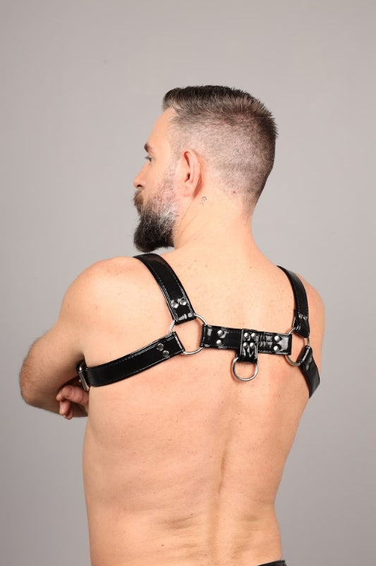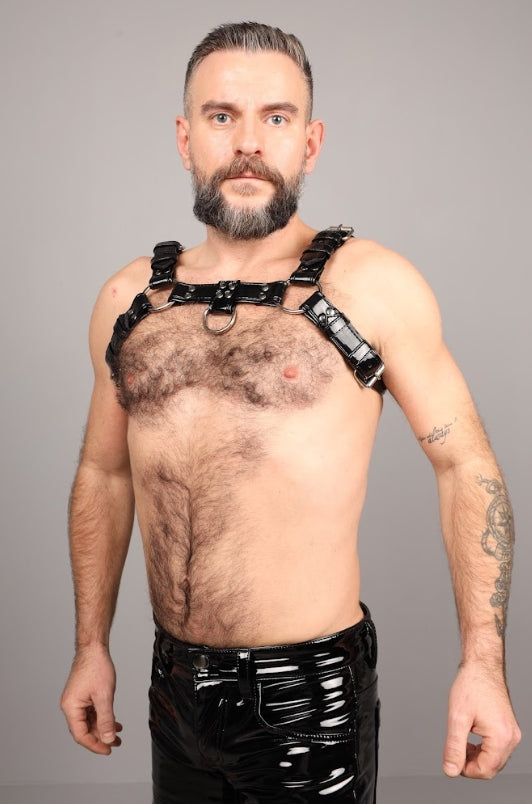 Hergestellt aus hochwertigem dickem PVC, besticht dieser Harness durch raffinierte Details und robuste Metallverarbeitung für ein luxuriöses Gefühl.