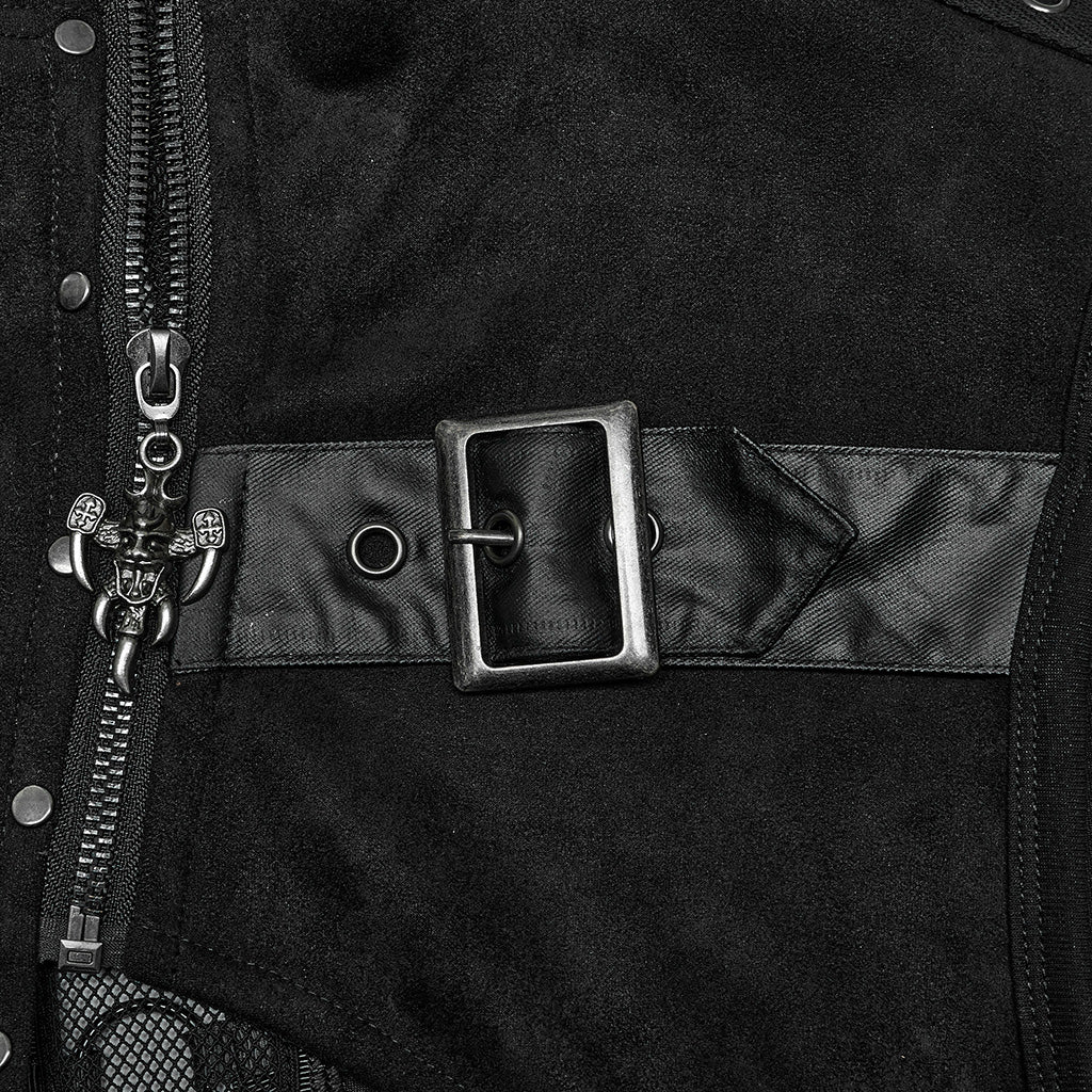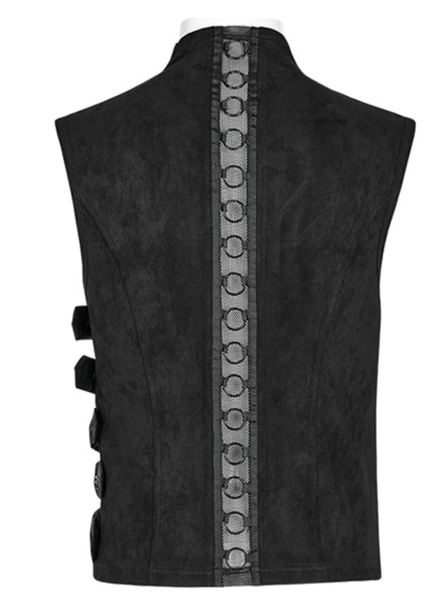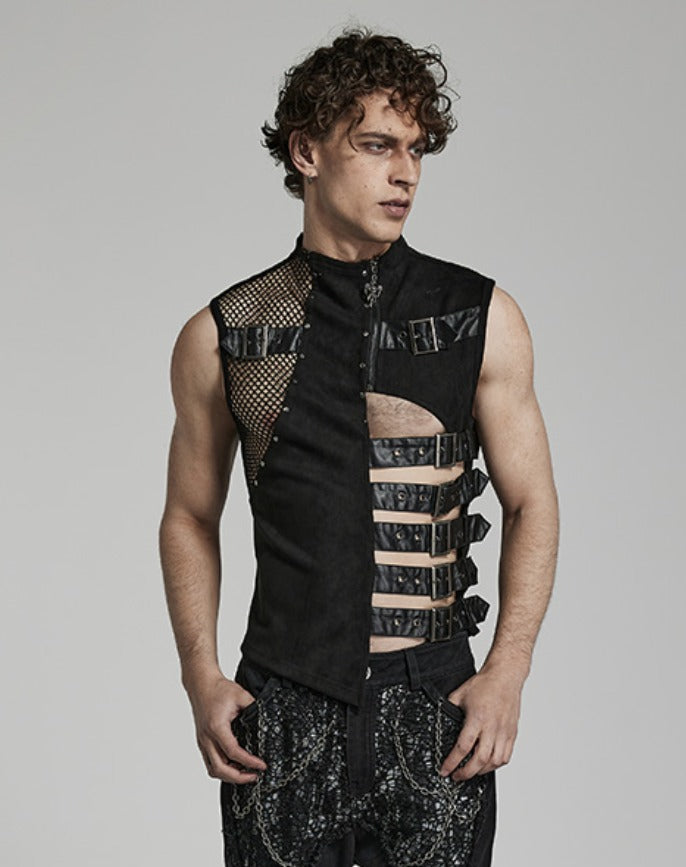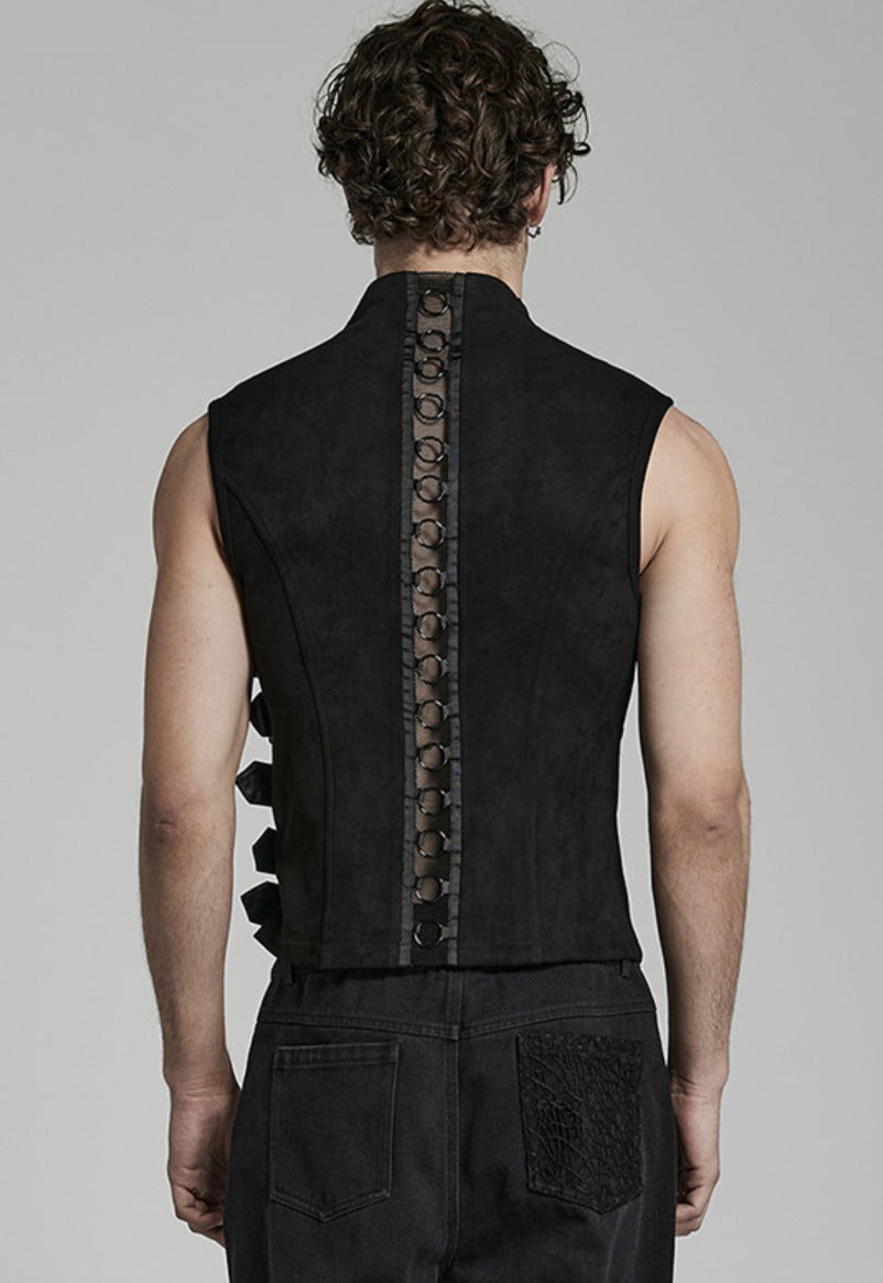 Diese Harness-Weste besticht durch einen modernen Materialmix aus Wildlederimitat und gummiertem Kunstleder. Verstellbare seitliche Schlaufen sorgen für perfekten Sitz, während das Netz die Sicht geschickt zulässt. Auf der Rückseite sorgt ein Metallringgewebe für einen aufregend coolen Look – verführerisch und selbstbewusst.