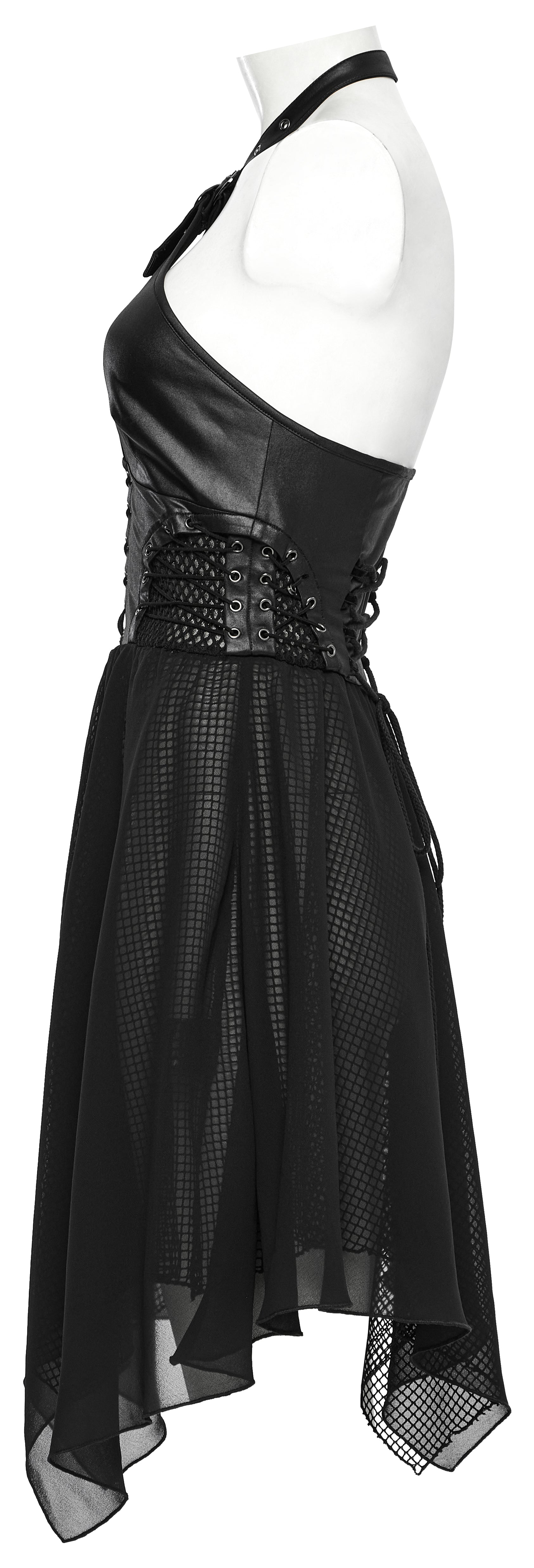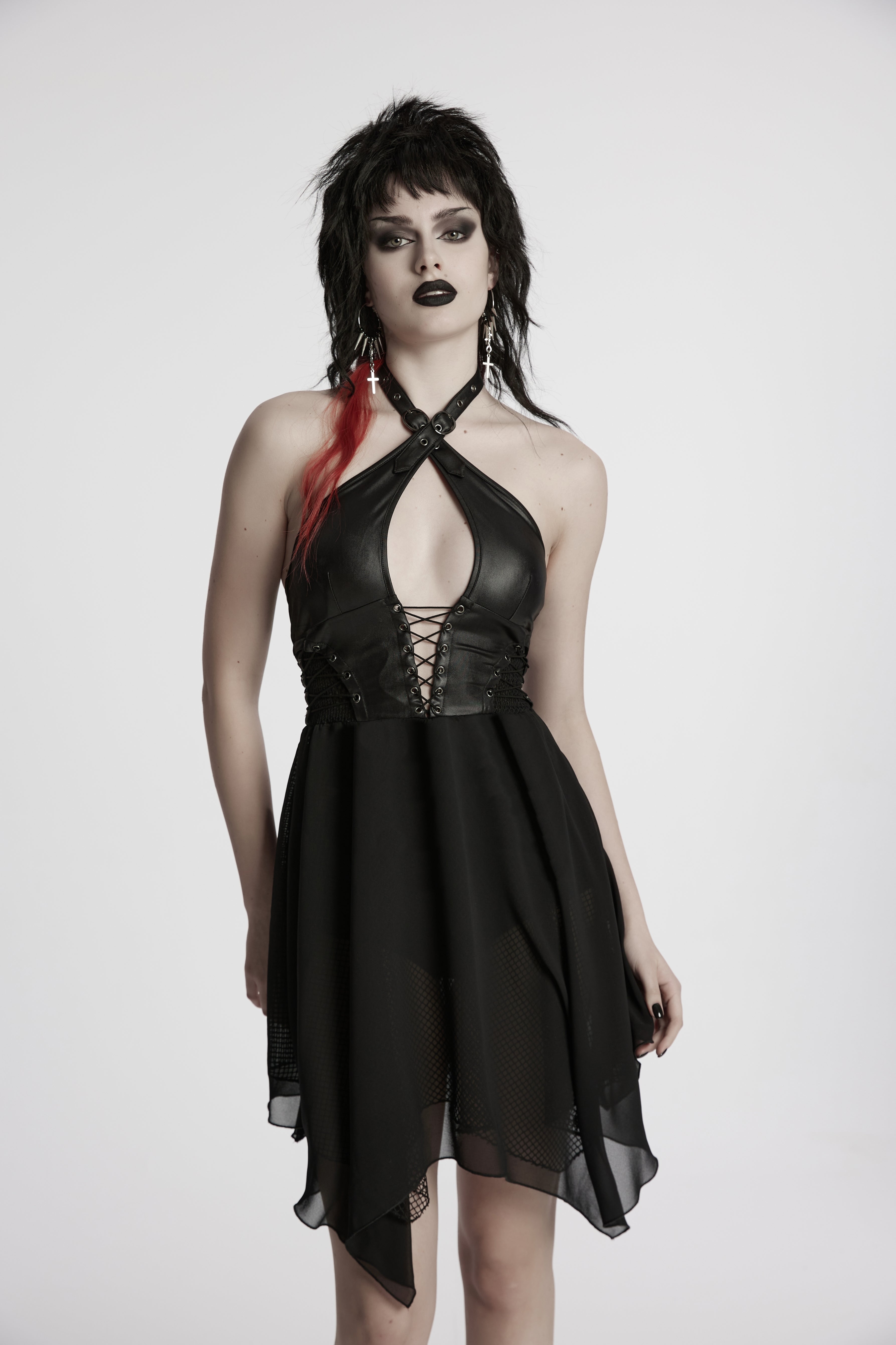 Dieses Neckholder-Kleid besticht durch einen verführerischen, tropfenförmigen Ausschnitt, der die Brust elegant in Szene setzt. Gefertigt aus elastischem, gummiertem Strickstoff, kombiniert mit zartem Chiffon und Mesh, umschmeichelt es deine Silhouette auf sinnliche Weise. Der anmutige Chiffon-Saum fließt verführerisch und sorgt für einen unwiderstehlichen Look. Wähle zwischen zwei aufregenden Neckholder-Varianten und setze ein mutiges Statement.