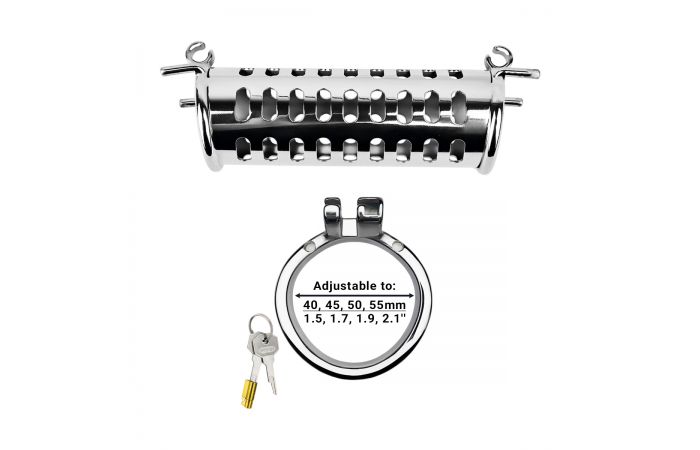 Using this penis cage is super simple, even for the simplest slave! One of the matching rings is placed over the penis and testicles. The cage is then placed over the penis and secured with the lock. A safe bet!