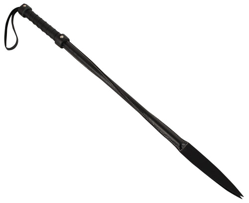 High-quality long crop L with double tip. The twisted leather crop is perfect for precise beating, with the double tip hissing and clapping wonderfully loudly.